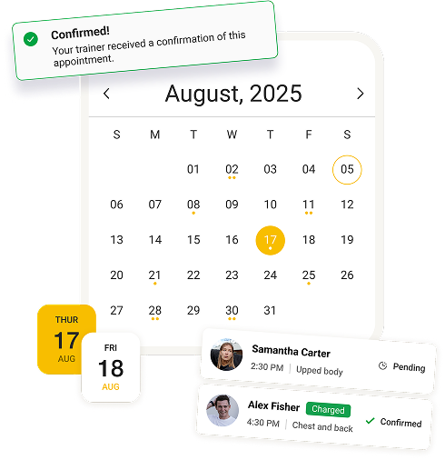 Stay on top of your schedule with a built-in calendar designed for trainers. Easily create, move, or cancel appointments, manage multiple clients at once, and avoid double bookings. Automatic reminders handle the follow-ups, so you can focus more on training and less on logistics.